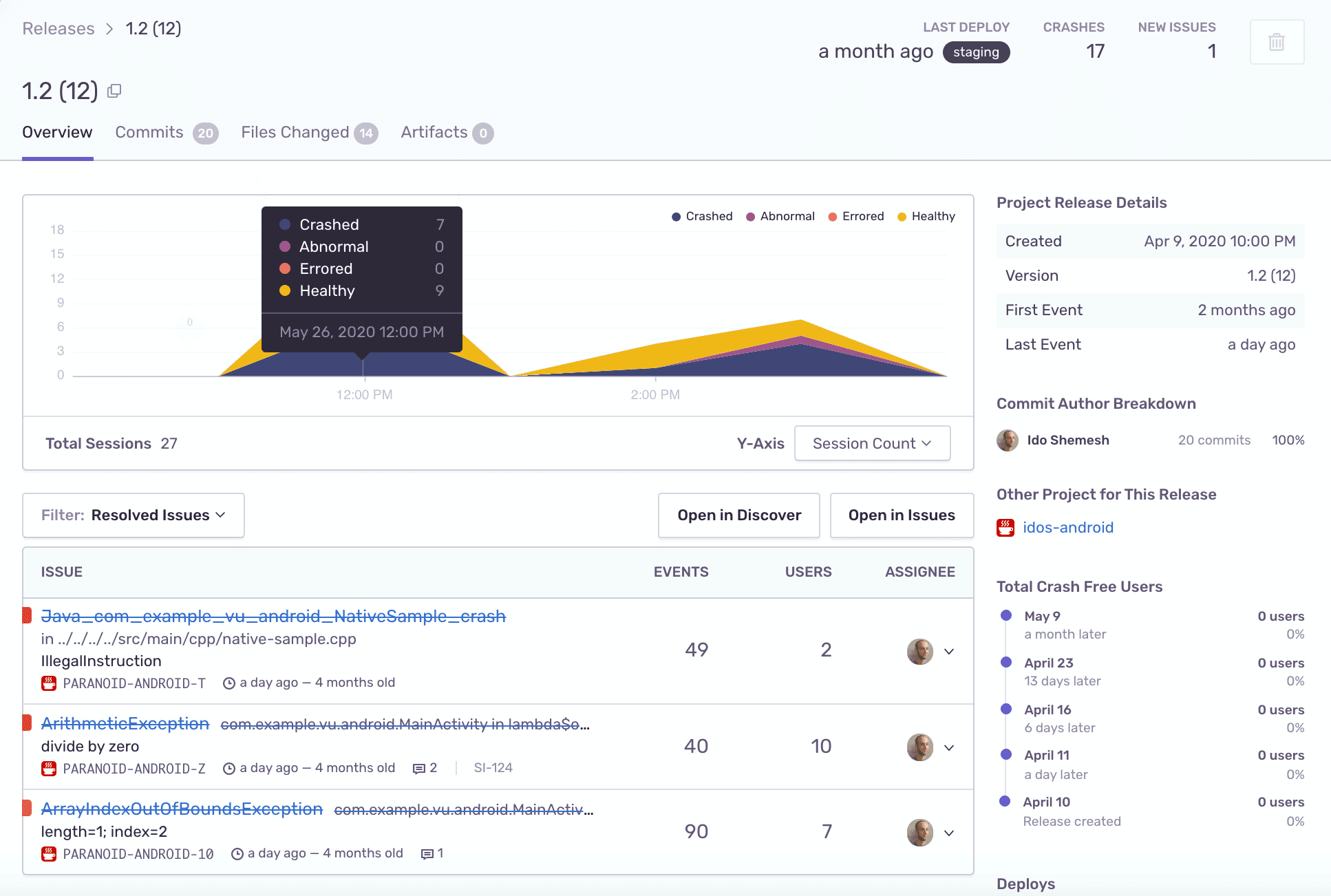 1. Commit Tracking - With a release in place, Sentry can track which commits were involved with a release and the authors who made them.